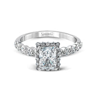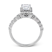 HOME / Emerald-cut Halo Engagement Ring in 18k Gold with Diamonds