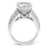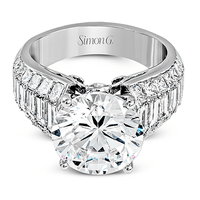 Crafted from 18k white gold using our patented Simon-set design technique, this modern engagement ring commands attention with 1.34 ctw of princess cut diamonds in combination with 1.42 ctw of baguette diamonds.