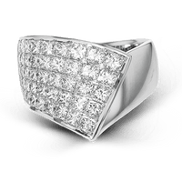 This beautiful ring is crafted with our patented Simon-set design technique an features a distinctive, overlapping design set with brilliant princess and round diamonds.