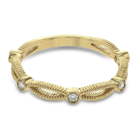 This detailed band can be stacked with other rings or worn alone and features sparkling diamonds.