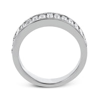 This sleek anniversary band is crafted with our patented Simon-set design technique and features brilliant baguette diamonds with a delicate milgrain edge.