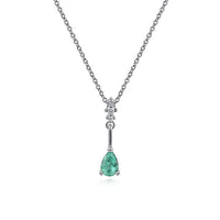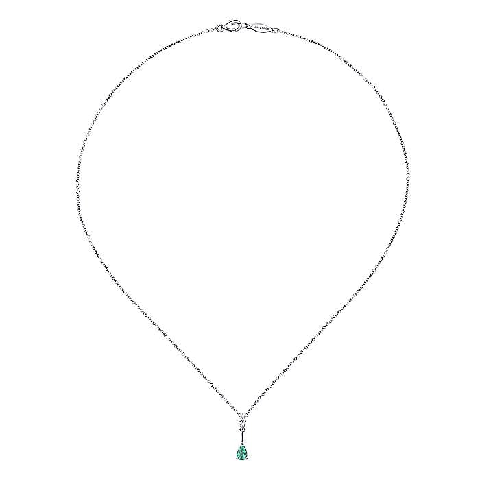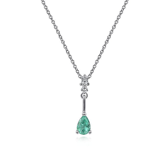 HOME / Gabriel & Co. NK1824W45EB 14K White Gold Pear Shaped Emerald and Diamond Drop Pendant Necklace