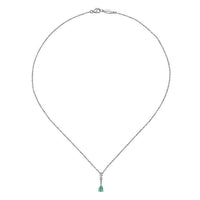 A lush, glittering green emerald in a chic pear shape adorns this fashionable necklace. Suspended beneath 0.03cts of shimmering accent diamonds, it adds an eye-catching pop of color and shine to this classic 14k white gold necklace.