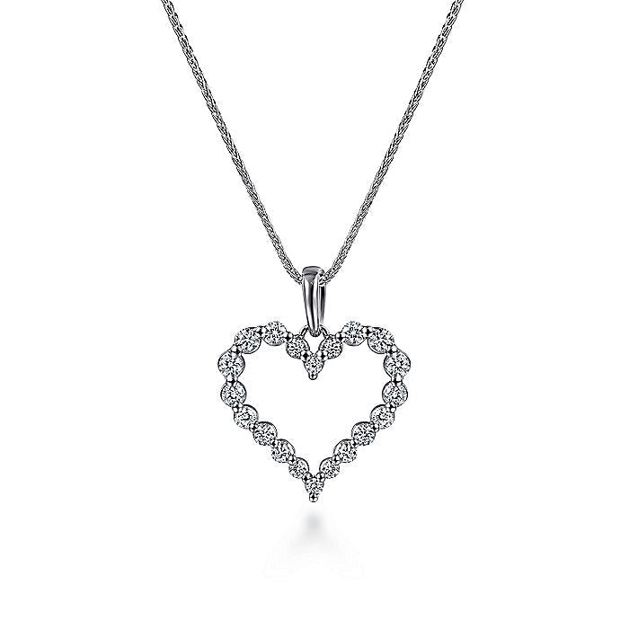 HOME / Gabriel & Co. NK1844W45JJ 14K White Gold Open Heart Diamond Pendant Necklace