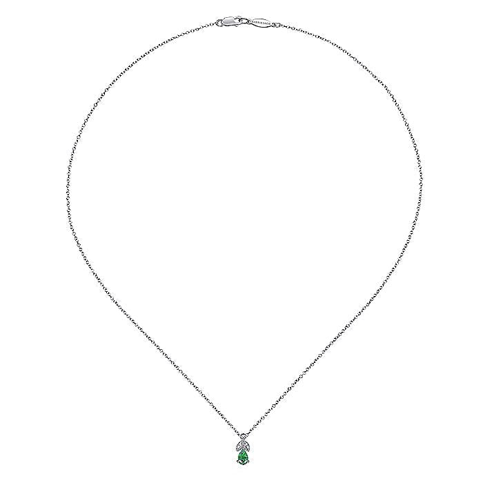 HOME / Gabriel & Co. NK2070W45EB 14K White Gold Emerald and Diamond Teardrop Pendant Necklace