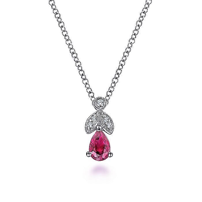 HOME / Gabriel & Co. NK2070W45RB 14K White Gold Ruby and Diamond Teardrop Pendant Necklace