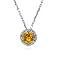 HOME / Gabriel & Co. NK2824W45CT 14K White Gold Round Citrine and Diamond Halo Pendant Necklace