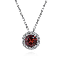 HOME / Gabriel & Co. NK2824W45GN 14K White Gold Garnet and Diamond Halo Pendant Necklace