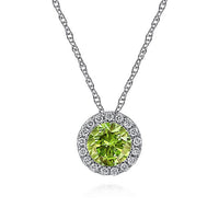 HOME / Gabriel & Co. NK2824W45PE 14K White Gold Peridot and Diamond Halo Pendant Necklace