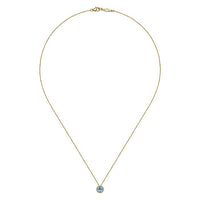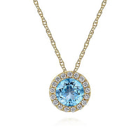 Gabriel & Co. NK2824Y45BT 14K Yellow Gold Round Swiss Blue Topaz and Diamond Halo Pendant Necklace