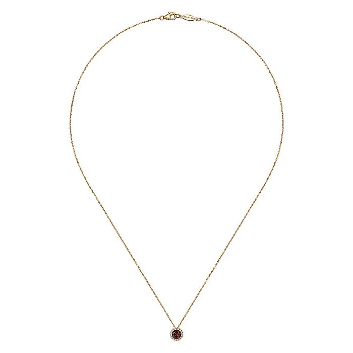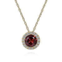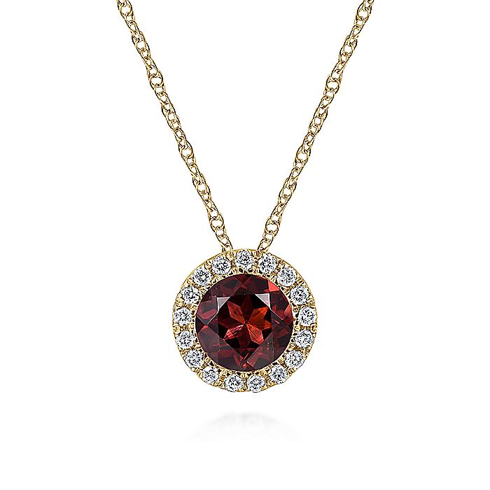 HOME / Gabriel & Co. NK2824Y45GN 14K Yellow Gold Garnet and Diamond Halo Pendant Necklace