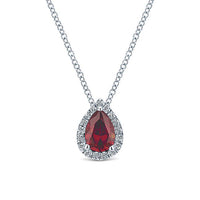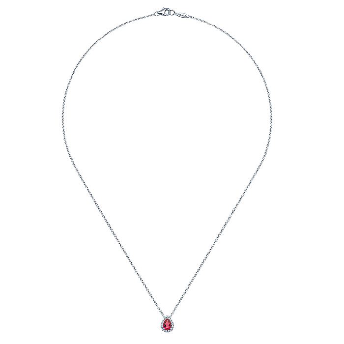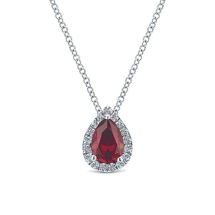 Gabriel & Co. NK3603W45RA 18 inch 14K White Gold Pear Shaped Ruby and Diamond Halo Pendant Necklace