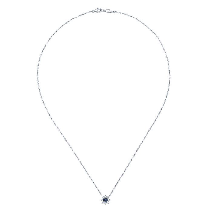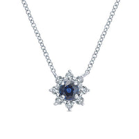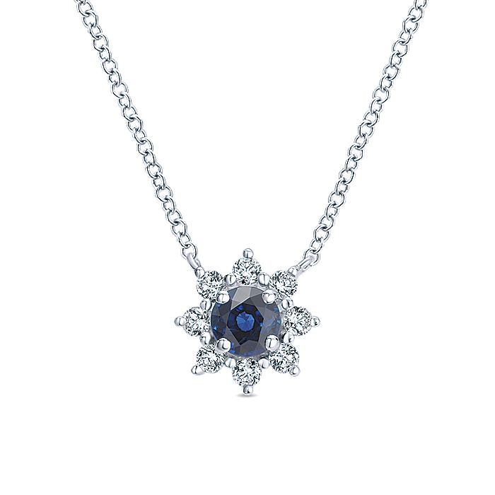HOME / Gabriel & Co. NK3952W45SA 18 inch 14K White Gold Sapphire and Diamond Halo Floral Pendant Necklace