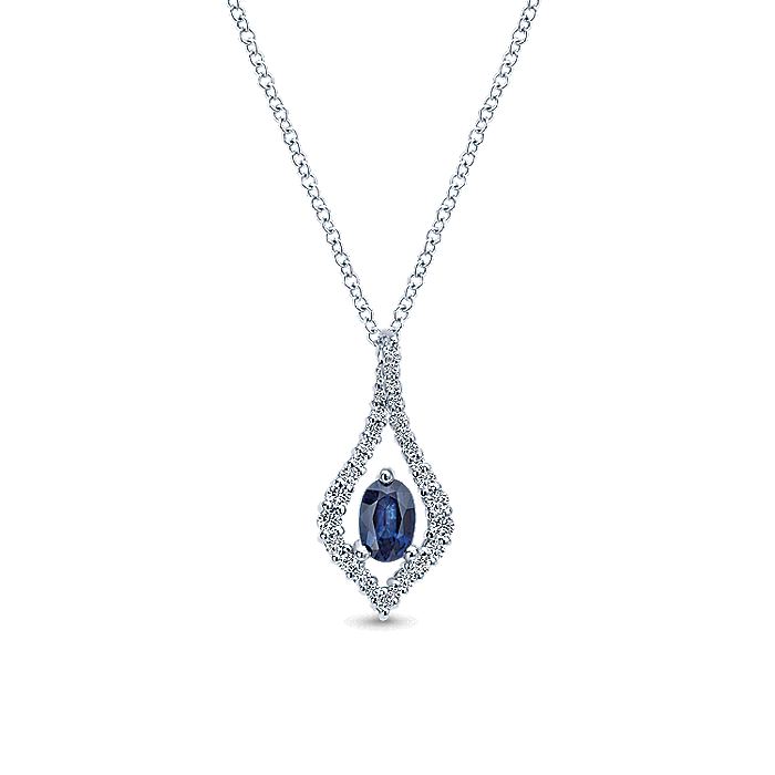 HOME / Gabriel & Co. NK4455W45SA 14K White Gold Floating Oval Sapphire Diamond Pendant Necklace