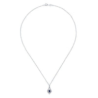 In this chic necklace, a velvety blue oval cut sapphire is suspended within an elegant teardrop pendant. Crafted from rich 14k white gold, the pendant is encrusted in 0.26ct pavé diamonds for eye-catching sparkle. Celebrate your next special occasion with a necklace worthy of the moment.