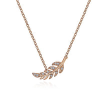 HOME / Gabriel & Co. NK4627K45JJ 14K Rose Gold Diamond Leaf Pendant Necklace
