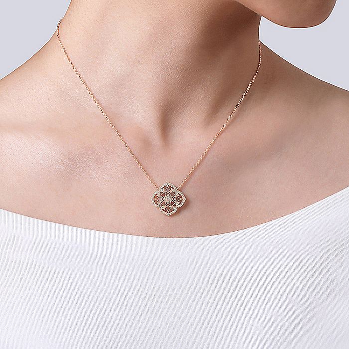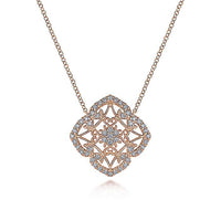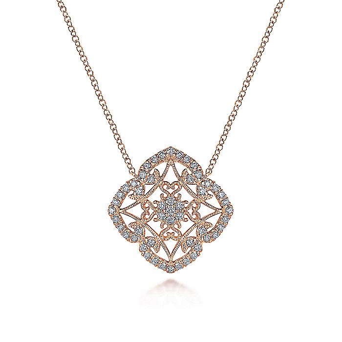 Gabriel & Co. NK4751K45JJ Vintage Inspired 14K Rose Gold Filigree Diamond Pendant Necklace