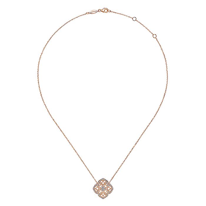 HOME / Gabriel & Co. NK4751K45JJ Vintage Inspired 14K Rose Gold Filigree Diamond Pendant Necklace
