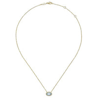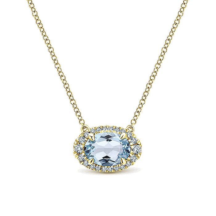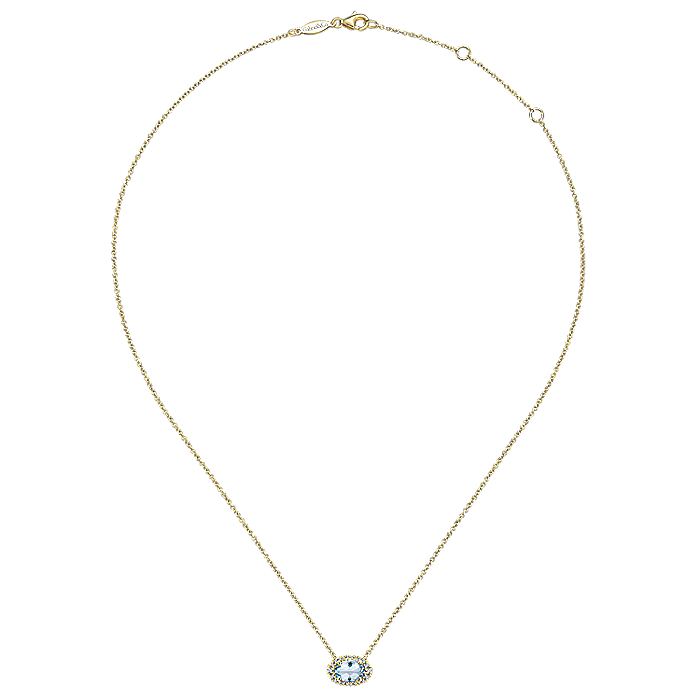 HOME / Gabriel & Co. NK5312Y45AQ 14K Yellow Gold Oval Aquamarine and Diamond Halo Pendant Necklace
