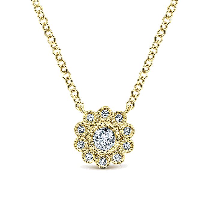 HOME / Gabriel & Co. NK5405Y45JJ 14K Yellow Gold Bezel Set Floral Diamond Pendant Necklace