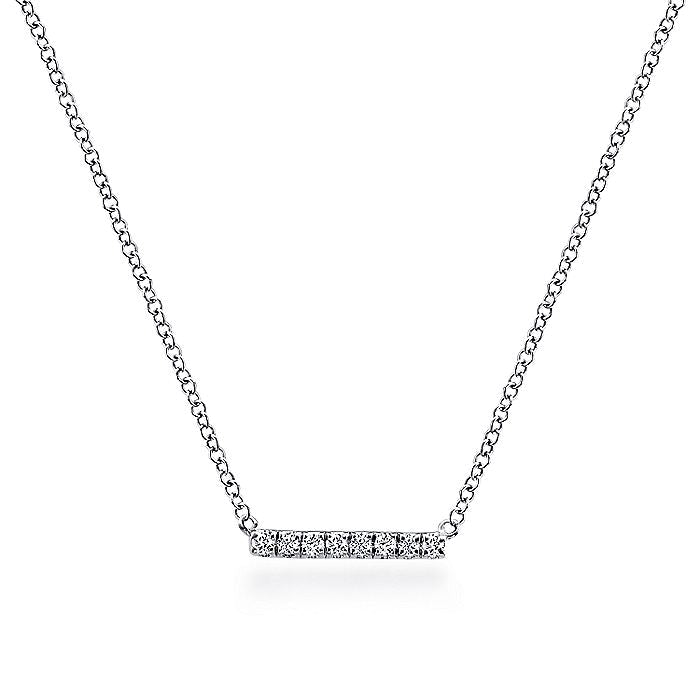 HOME / Gabriel & Co. NK5422W45JJ 14K White Gold Petite Pavé Diamond Bar Necklace