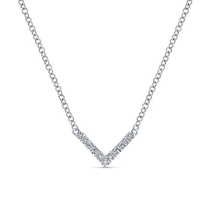 HOME / Gabriel & Co. NK5423W45JJ 14K White Gold V Shaped Diamond Bar Necklace