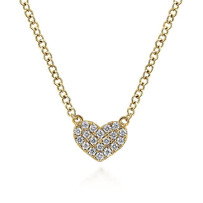 A darling petite heart is adorned with hand picked pavé diamonds to create a necklace symbolizing eternal love. Crafted from luxurious 14k yellow gold and studded with 0.05cts of shimmering diamonds, it's sure to sparkle its way into her heart.