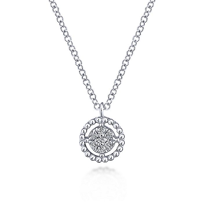 HOME / Gabriel & Co. NK5723W45JJ 14K White Gold Beaded Round Floating Diamond Pendant Necklace