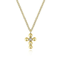 Gabriel & Co. NK5935Y45JJ 14K Yellow Gold Beaded Diamond Cross Necklace