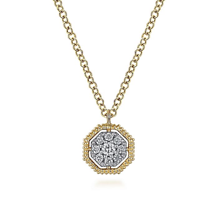 HOME / Gabriel & Co. NK5946Y45JJ 14K Yellow Gold Octagonal Pavé Diamond Pendant Necklace