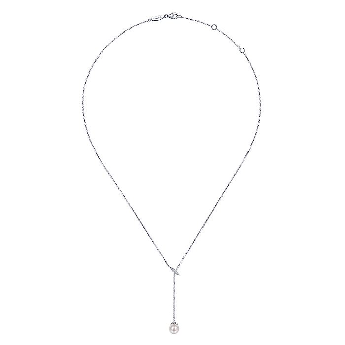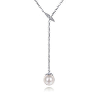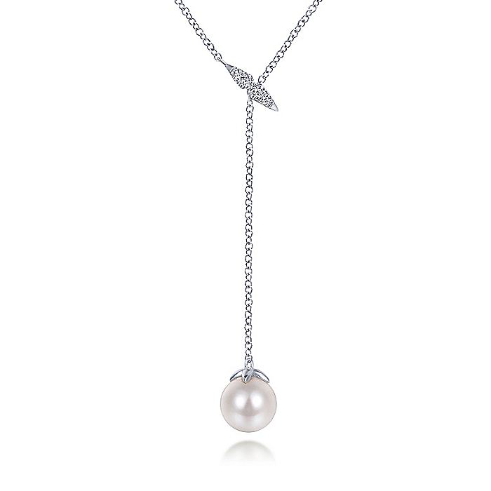HOME / Gabriel & Co. NK5963W45PL 14K White Gold Diamond Bar Y Necklace with Cultured Pearl Drop
