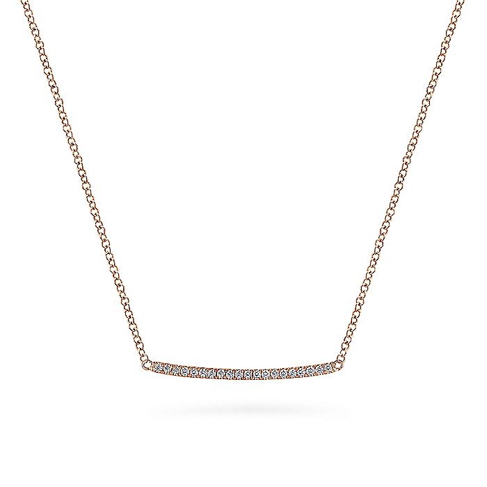 HOME / Gabriel & Co. NK5986K45JJ 14K Rose Gold Curved Pavé Diamond Bar Necklace