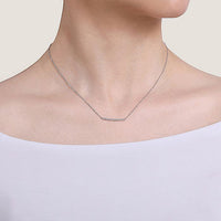 Exquisite sophistication can be found in minimal craftsmanship. This necklace showcases a fragile 14K white gold bar featuring .09 ct diamonds. Make a splash with this chic style that can be worn solo or paired with a dozen other necklaces for a fashionably maximalist look.