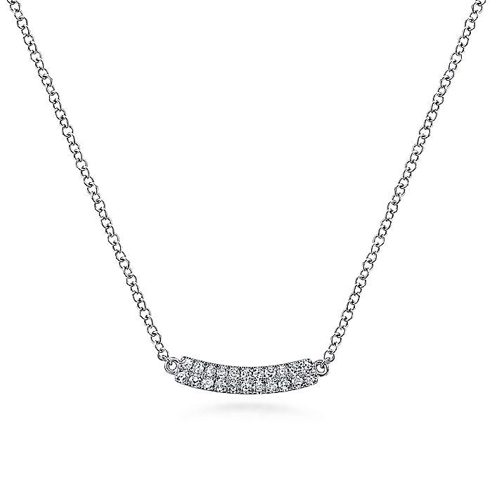 HOME / Gabriel & Co. NK5989W45JJ 14K White Gold Curved Pavé Diamond Bar Necklace