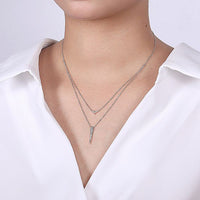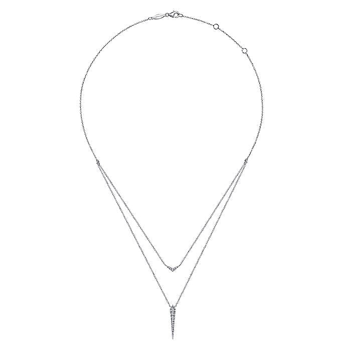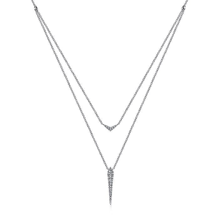 HOME / Gabriel & Co. NK6009W45JJ 14K White Gold Layered Pavé Diamond Bar and Spike Pendant Necklace