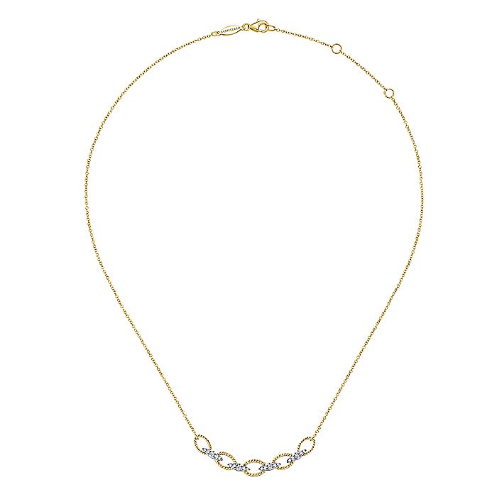 HOME / Gabriel & Co. NK6063M45JJ 14K Yellow-White Gold Twisted Rope Oval Link Necklace with Diamond Connectors