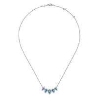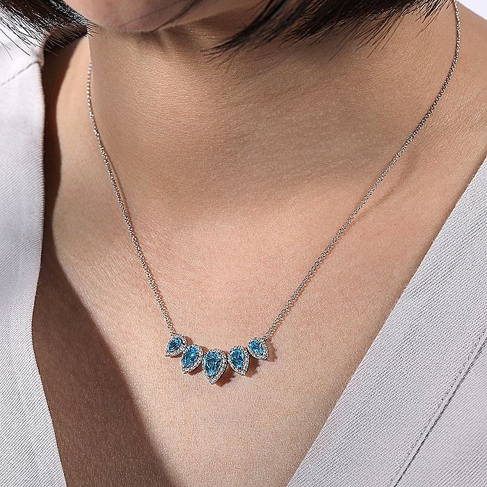 Gabriel & Co. NK6079W45BT Graduating 14K White Gold Pear Shaped Blue Topaz and Diamond Halo Necklace