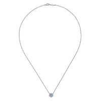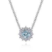 Gabriel & Co. NK6143W45AQ 18 inch 14K White Gold Round Aquamarine and Diamond Halo Pendant Necklace