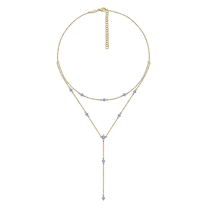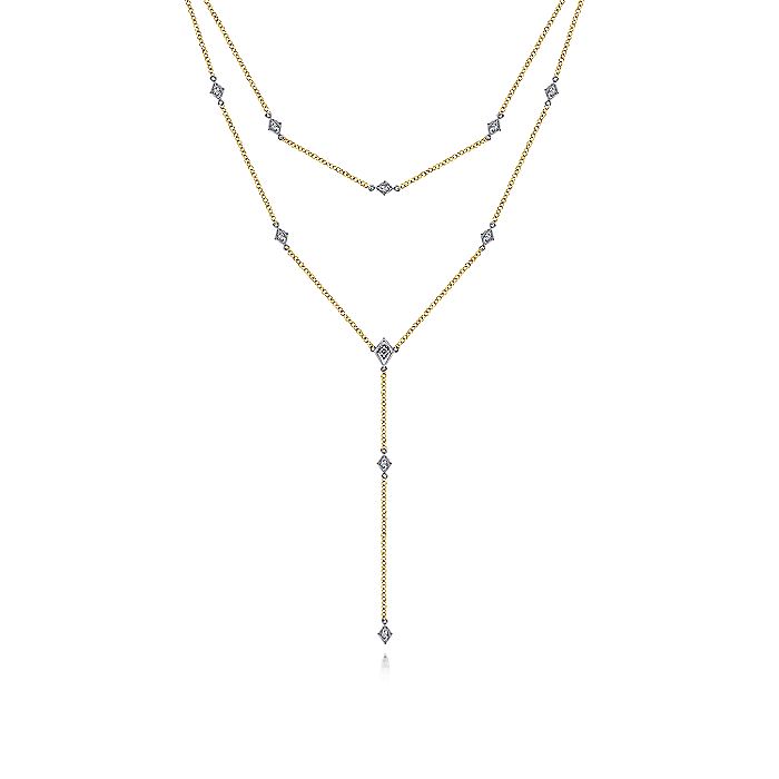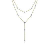 HOME / Gabriel & Co. NK6193M45JJ 14K Yellow-White Gold Two Strand Diamond Station Y Necklace