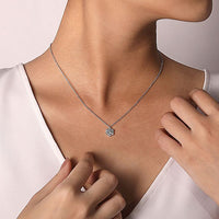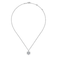 HOME / Gabriel & Co. NK6213W44JJ 14K White Gold Round Diamond Pendant Necklace with Baguette and Round Hexagonal Halo
