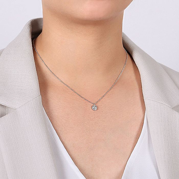HOME / Gabriel & Co. NK6230W45JJ 14K White Gold Round Diamond Cluster Pendant Necklace