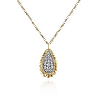 HOME / Gabriel & Co. NK6357Y45JJ 14K Yellow Gold Teardrop Diamond Pavé Pendant Necklace with Beaded Frame
