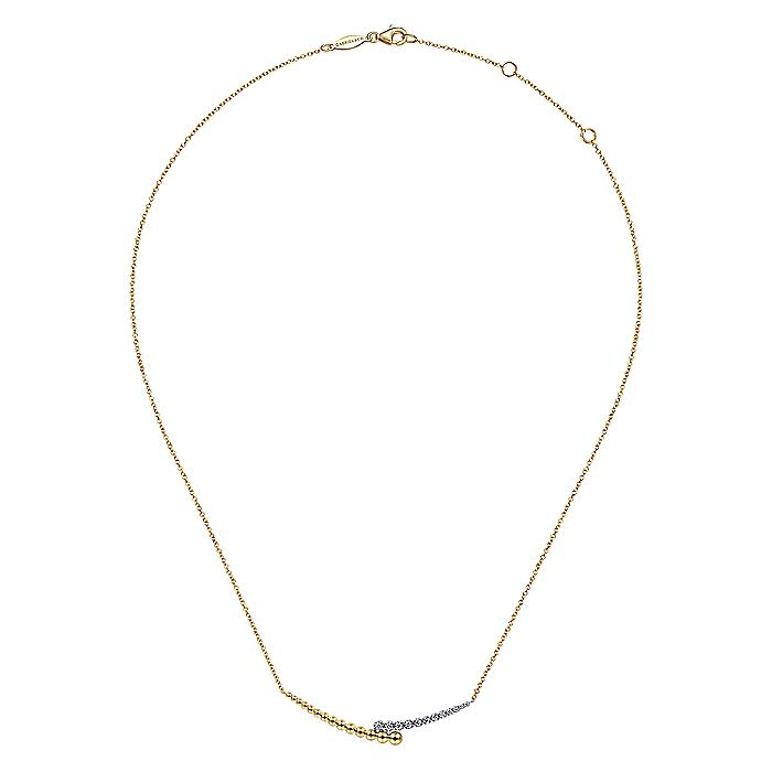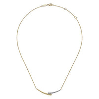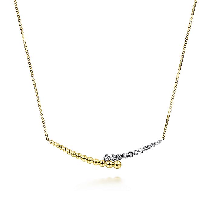 HOME / Gabriel & Co. NK6362M45JJ 14K Yellow-White Gold Diamond By-Pass and Bujukan Bead Curved Bar Necklace with Butter Cup Setting in size 17.5 inch