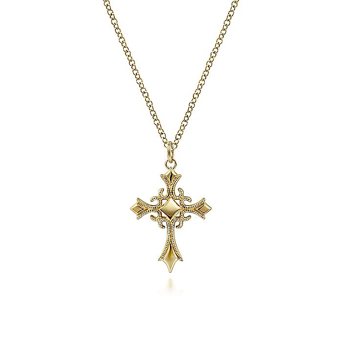 Gabriel & Co. NK6410Y4JJJ 14K Yellow Gold Vintage Inspired Cross Pendant Necklace