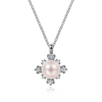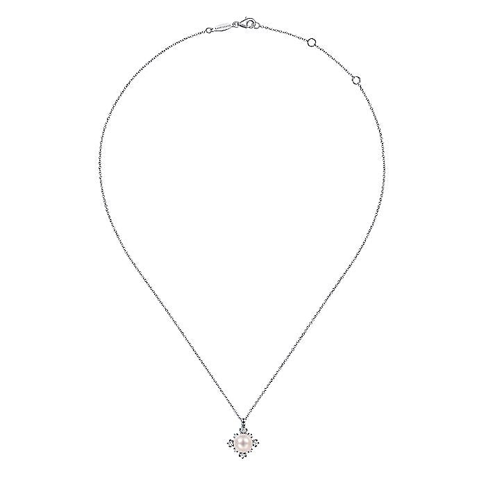 HOME / Gabriel & Co. NK6440W45PL 14K White Gold Round Pearl Pendant Necklace with Diamond Accents