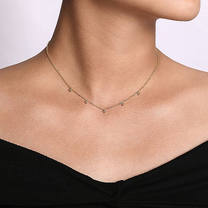 HOME / Gabriel & Co. NK6464Y4JJJ 14K Yellow Gold Chain Necklace with Bujukan Bead Drop Stations