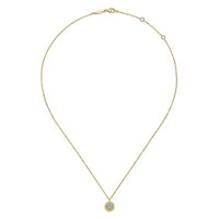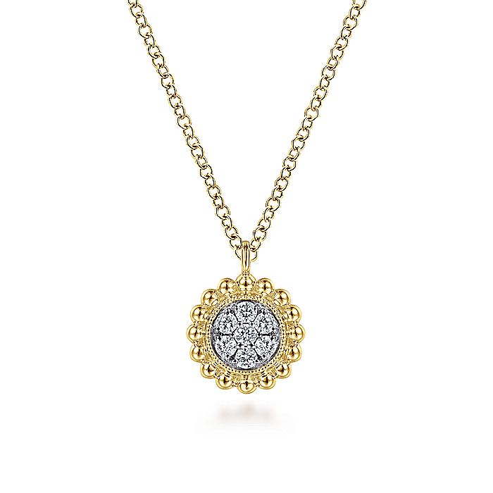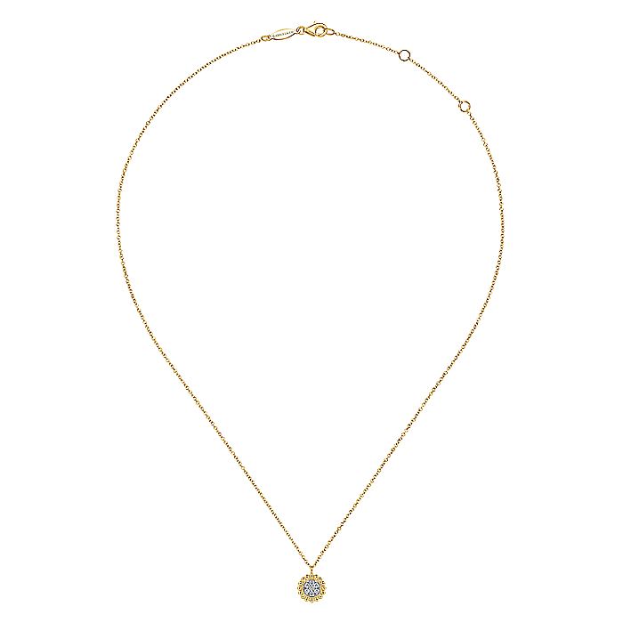 HOME / Gabriel & Co. NK6465Y45JJ 14K Yellow Gold Round Diamond Cluster Pendant Necklace with Bujukan Frame