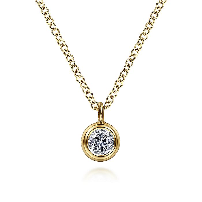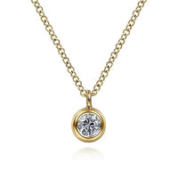 HOME / Gabriel & Co. NK6472Y4JWS 14K Yellow Gold Round Bezel Set White Sapphire Pendant Necklace