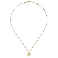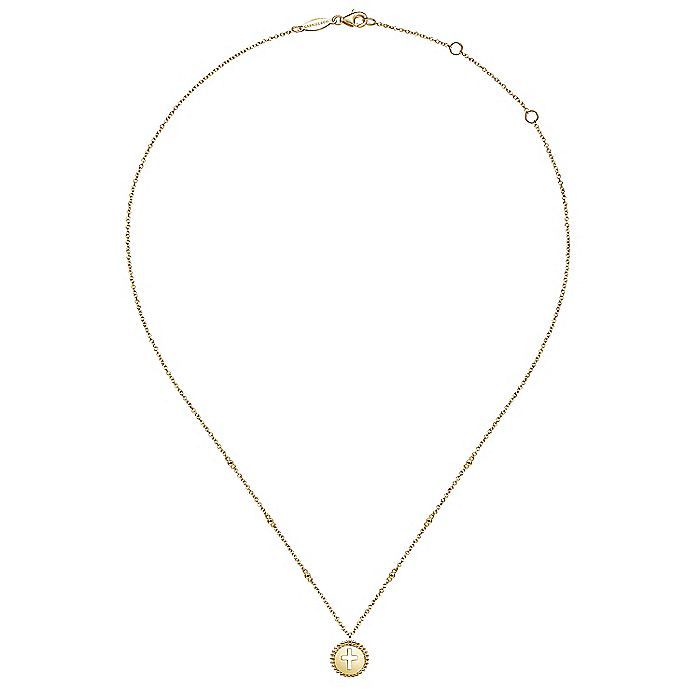 HOME / Gabriel & Co. NK6490Y4JJJ 14K Yellow Gold Round Cutout Cross Pendant Necklace with Bujukan Bead Frame