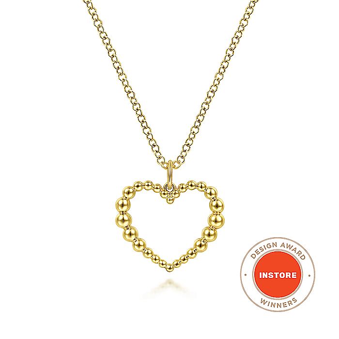 Gabriel & Co. NK6561Y4JJJ 14K Yellow Gold Bujukan Beaded Open Heart Pendant Necklace